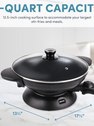 I can’t write in Curtis Sittenfeld’s exact voice; Sittenfeld-esque review: Aroma AEW-306 electric wok, 5qt, nonstick, tempered lid, temp probe, domestic, witty.